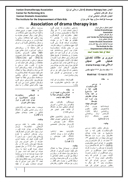 Summary of "Articles" of the first scientific conference drama therapy iran