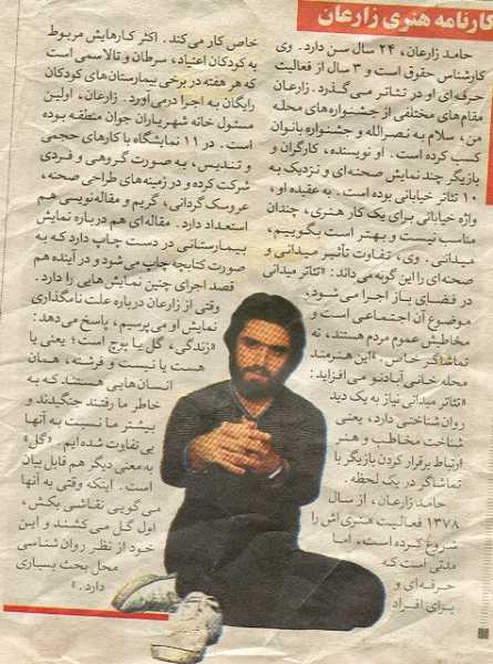 " حامد زارعان" کارگردان و نمایشنامه نویس و فعال عرصه " تئاتر بیمارستانی " او از بانیان گروه تئاتر بیمارستانی" مفید آریا " است که تا کنون چندین تئاتر بیمارستانی را در مراکز درمانی اجرا کرده زارعان در عین حال جوان بودن مدت ها است که با معلولان و مصدومان ، تئاتر بیمارستانی کار می کند سایت دراما محله به زودی برای آشنایی بیشتر کاربران گفت و گویی مفصل با این جوان خلاق و خوش فکر انجام می دهد به عکس های این خبر رجوع کنی